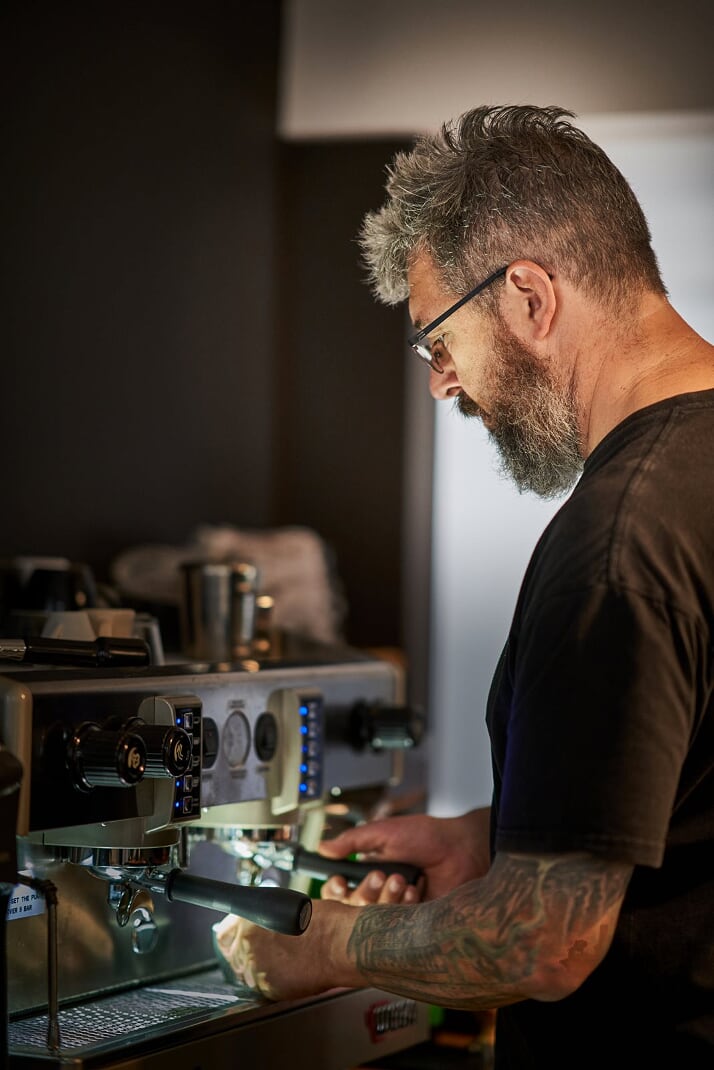 Lors de l’aménagement du café, une attention particulière a été portée à la sélection des matériaux utilisés. Un plancher centenaire torréfié et des plaques de bambou sont devenus comptoir de service et de la peinture recyclée est venue couvrir certains murs.